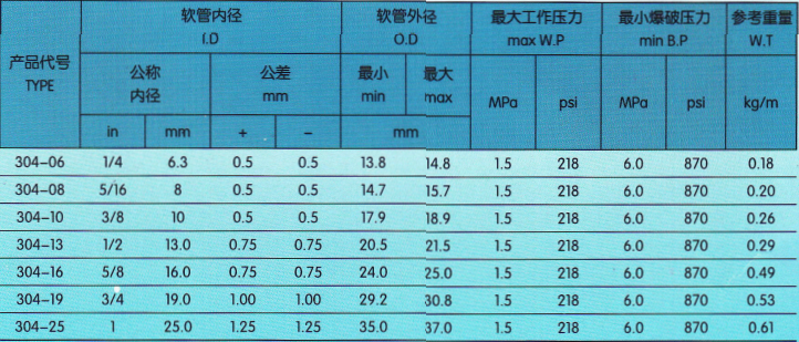 Suitable to delivery of hot air below 120℃ and water below 100℃.It may be used for pneumatic braking in vehicles