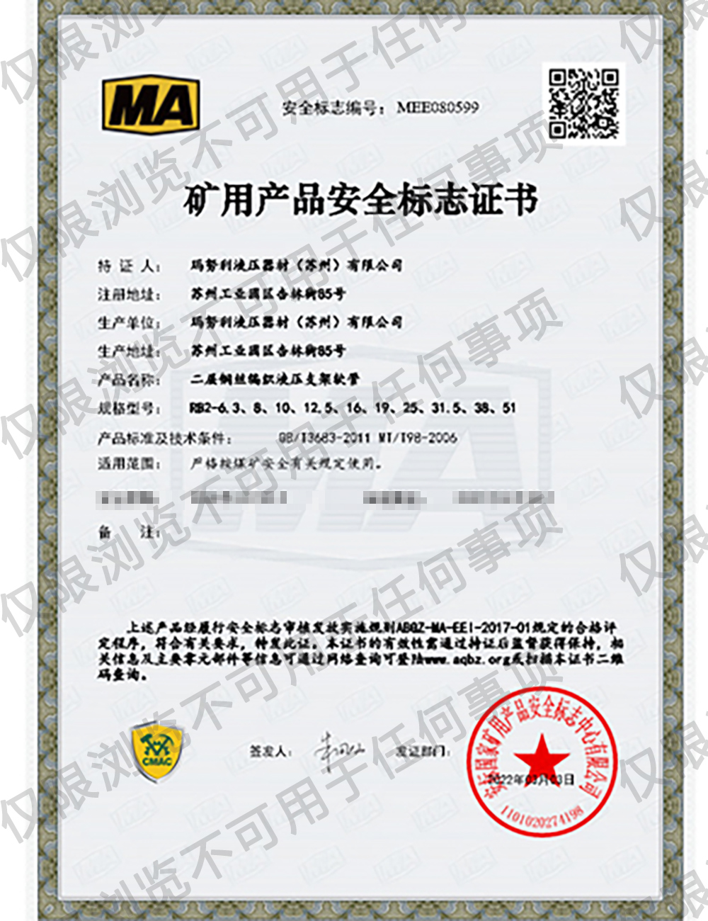礦用產品安全標志書