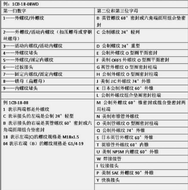3在原代號后加WD表示配膠墊(ED圈)密封柱端例:1CB-22-08WD