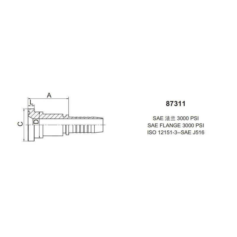 扣壓式接頭87311 直通 SAE 法蘭(flange)3000 psi