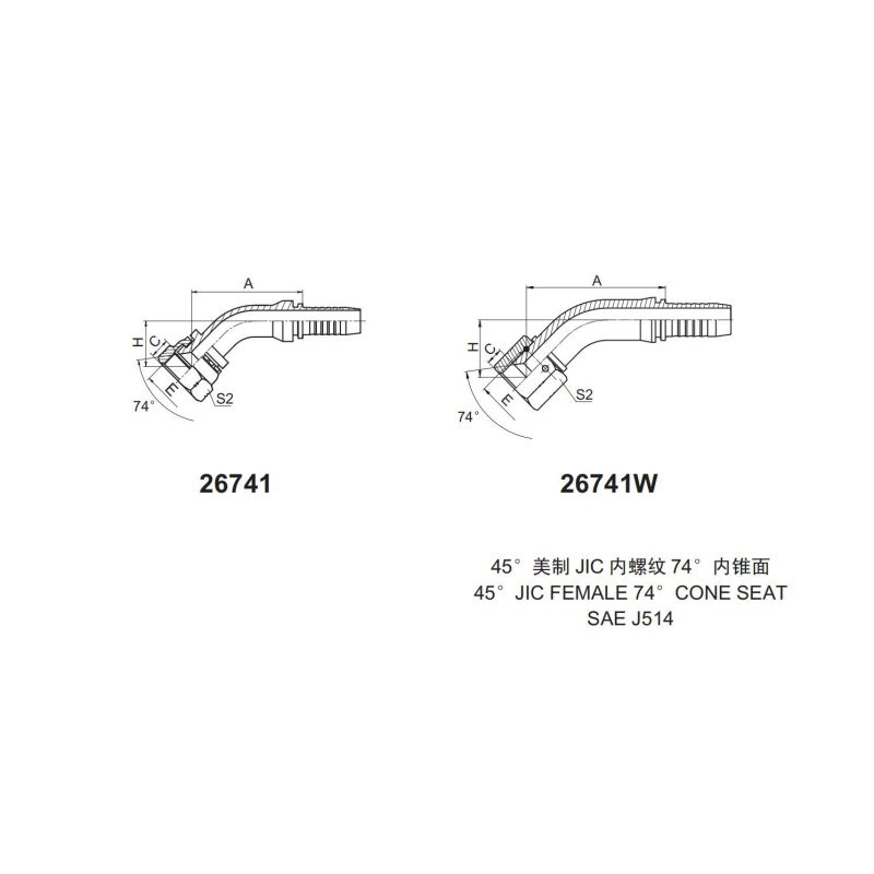 永華標準扣壓式接頭 26741和26741W 45美制JIC內螺紋74內錐面45JIC FEMALE 74 CONE SEAT SAE J514永華集團創辦于1