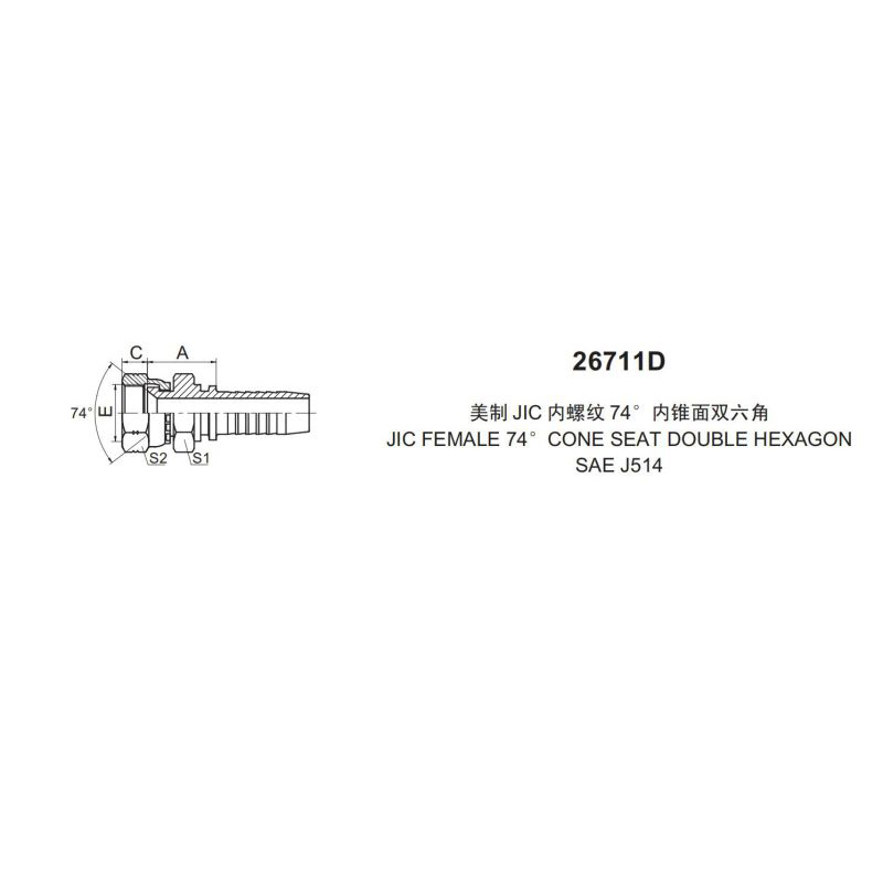 扣壓式接頭 26711D 美制 JIC 內螺紋 74° 內錐面雙六角
