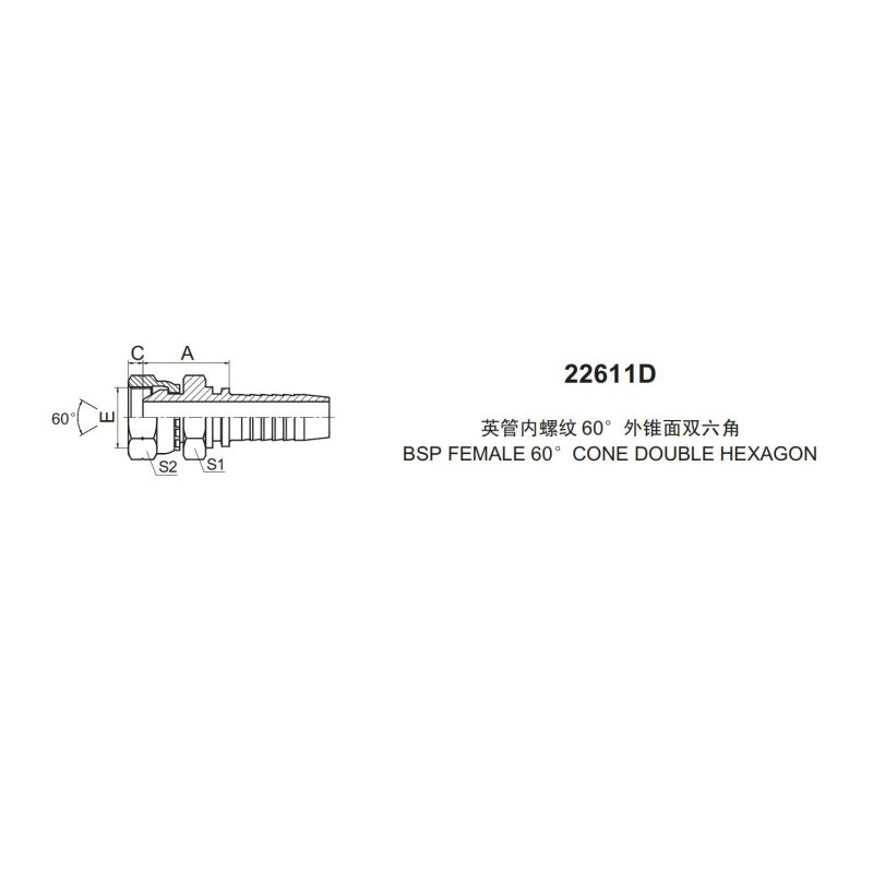 永華標準 扣壓式接頭 22611D 英管內螺紋 60°外錐面 雙六角螺母-BSP螺紋 國產接頭 直通管接頭 總成接頭 液壓器材接頭