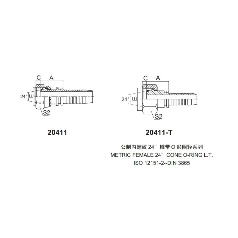 永華標(biāo)準(zhǔn) 扣壓式接頭 20411和20411-T 公制內(nèi)螺紋 24° 錐帶O形圈輕系列 錐型接頭 輕型接頭 國(guó)產(chǎn)液壓接頭 總成管接頭 公制接頭